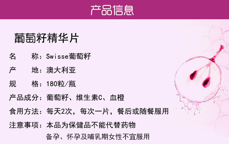 【产品名称】 Swisse Grape Seed 葡萄籽