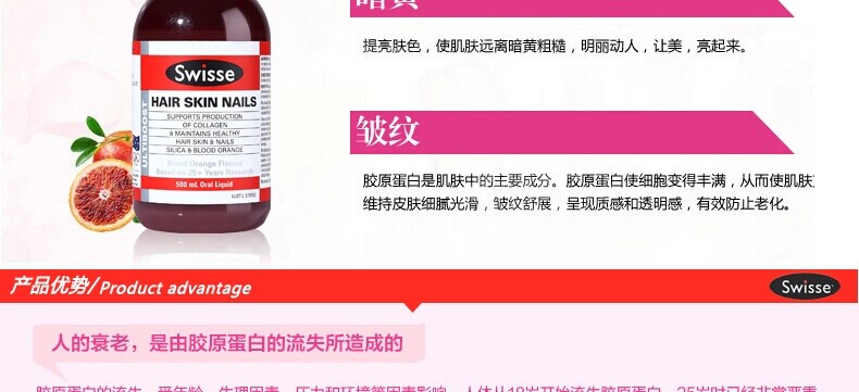 【产品名称】 Swisse液体胶原蛋白 富含VC 美白/抗衰/护发/强甲