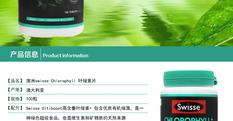 【产品名称】Swisse 叶绿素片