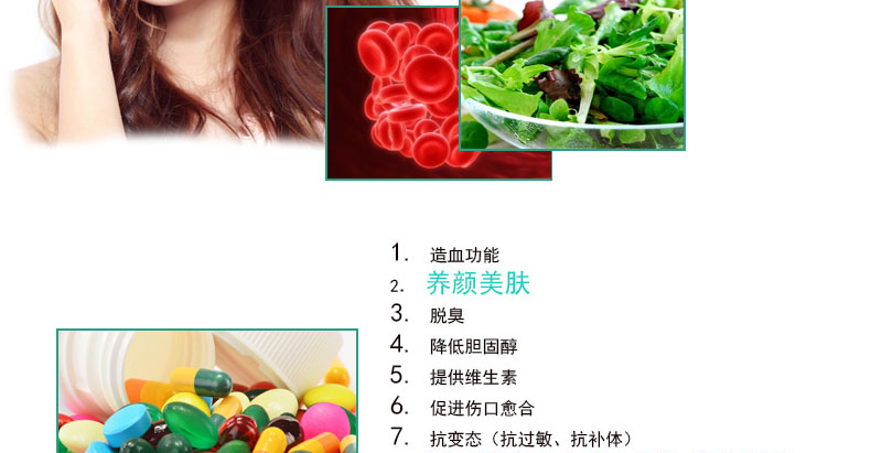 【产品功效】美白养颜、抗衰老、改变酸性体质、造血作用、提供维生素、维持酶的活性、解毒作用、抗病去味