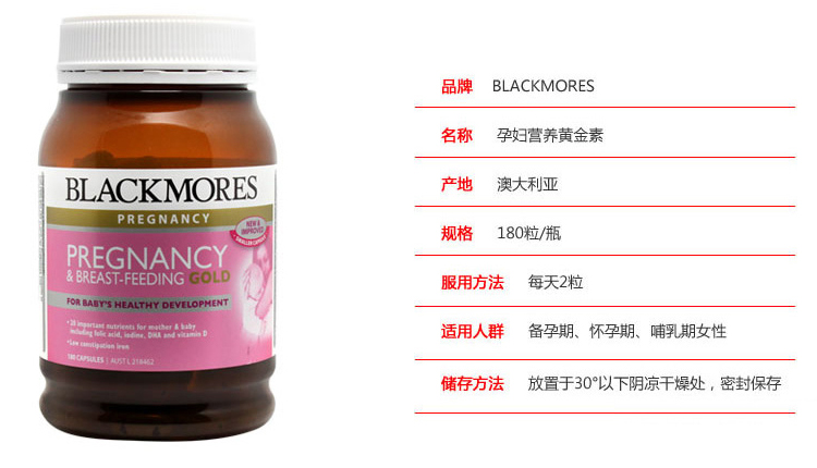 【产品名称】Blackmores孕妇黄金营养素180粒
