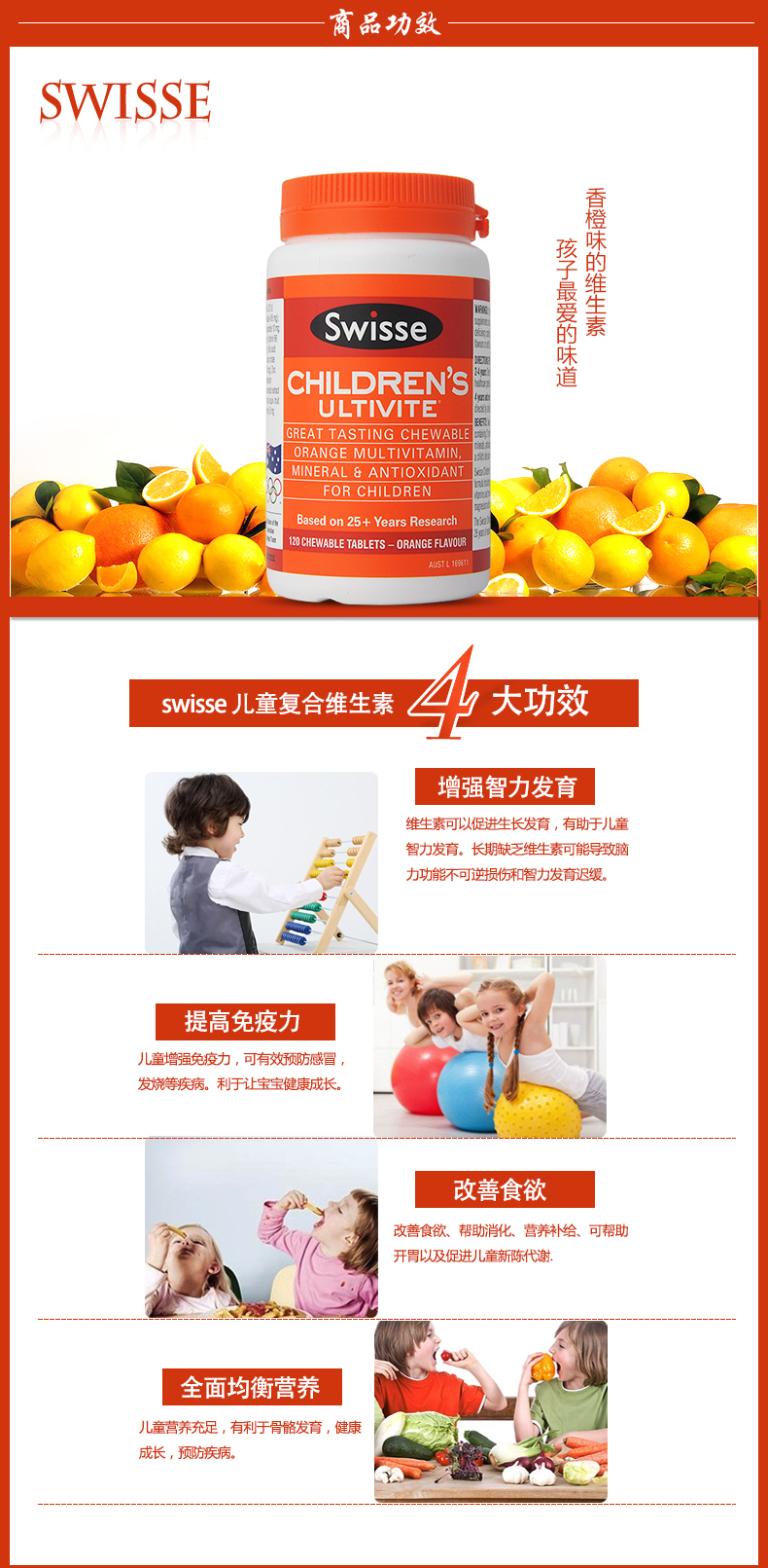 Swisse研发团队为儿童定制了他们喜欢的口感,可咀嚼,帮助父母解决孩子不喜欢吃药的难题。